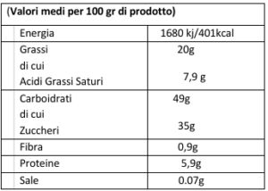 Farina di FRUMENTO, BURRO fresco 20%, uva sultanina 16%, tuorlo d'uovo fresco di Cat. A da Galline allevate a terra 8%, scorza di arancia extra 4% (scorza d'arancia, sciroppo di glucosio, correttore di acidità: acido citrico), pasta d’arancia 2% (scorza d’arancia, sciroppo di glucosio, zucchero) zucchero, lievito madre, miele, Emulsionanti mono e di gliceridi degli acidi grassi, sale, lievito di birra, aromi.