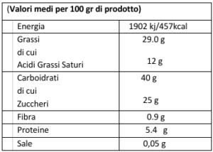 Farina di FRUMENTO, BURRO fresco 20%, crema al cioccolato bianco 12% (cioccolato bianco 55%, zucchero, LATTE intero in polvere, burro di cacao, emulsionanti: lecitina di SOIA, aromi naturali) lamponi al naturale 12% (lamponi, zucchero, acqua, aromi, acidificante: acido citrico), tuorlo d'UOVO fresco di cat. A da galline allevate a terra 9%, zucchero, Freddozzo di Oleggio 23° alcool 5% (infuso di grappa, zucchero, lamponi) miele, lievito madre, olio di semi di girasole, sale, aromi naturali, emulsionanti: mono e di gliceridi degli acidi grassi.